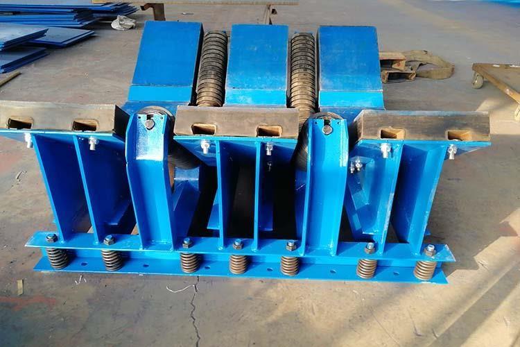 1、皮帶緩沖床主要由緩沖支架和緩沖滑條組成,緩沖滑條主要三部分組成,高分子量聚乙烯板(井下黑色阻燃)、彈性橡膠(阻燃抗靜電)、鋼構(gòu)等。